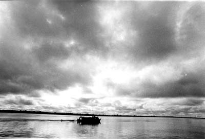 船を下りると、白と黒の世界が広がっていた。 どんよりと垂れこもった夜明けの空の下で、アマゾン川は、ときおり光を放ちながらゆったりと流れていく。太陽が昇り始め、突然一条の光が 地上に差込みバラ色が拡散した。 生きていることを実感し、神聖な気持ちが身体を満たしていく。 日本からはるか離れたアマゾン川のほとりでこうしていることが不思議であった。