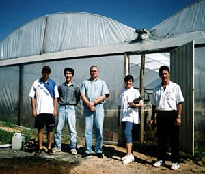 | ピラルク養殖企画メンバー:左から、養殖技師、著者、サンパウロ州立水産研究所所長、同技師、同技師 |