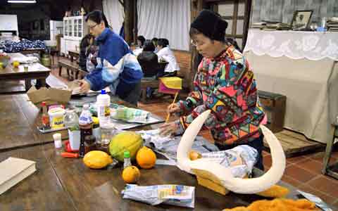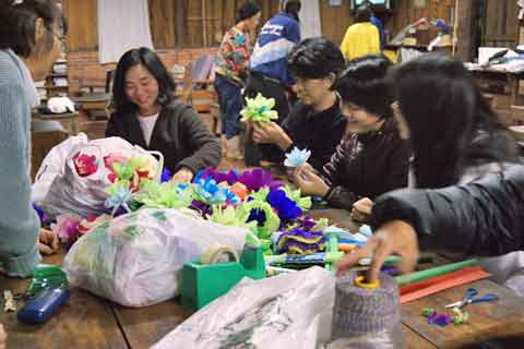 ヴェラの指導でフェスタの飾り付けが作られていく |