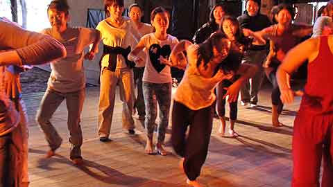 情熱を以て全身で表現し踊り指導するKelly。 |