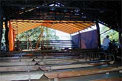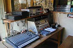 音響室。右の上下は最近まで使用していた手作りのミキサー