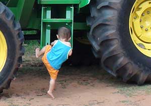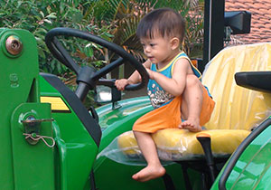 ユバの年少組の仁です まだ1歳ですが男ですね、新しいトラクターが来たら早速よじ登って得意満面です。